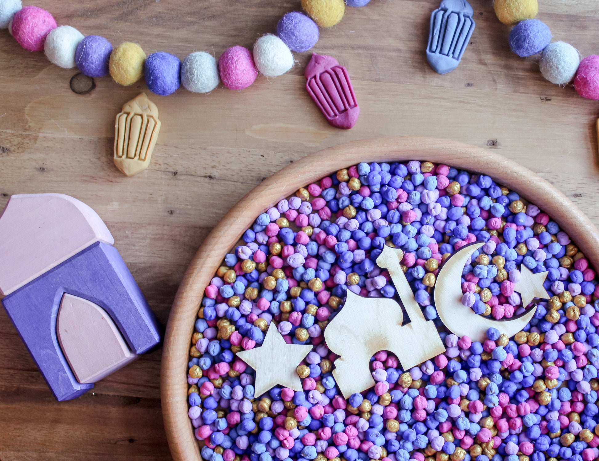 A set of Islamic inspired loose parts. Add them to your sensory trays, or even use them with playdough!